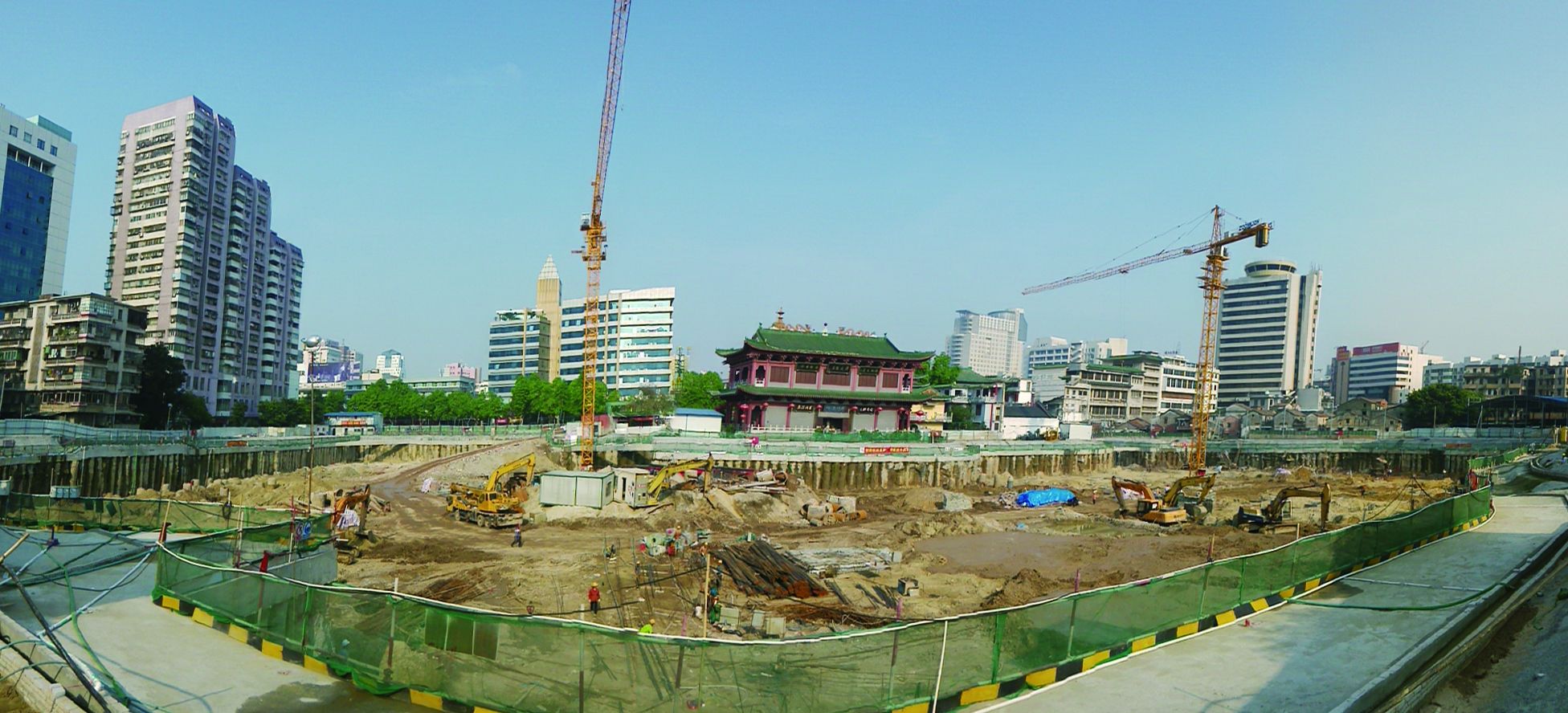 仁壽寺基坑支護(hù)工程,佛山重點(diǎn)工程之一,地下室面積14000平方米,基坑最大開挖深度10.6米。該工程采用雙排樁支護(hù)設(shè)計(jì),三軸攪拌止水樁609套、支護(hù)樁654條,出土超13萬立方米。